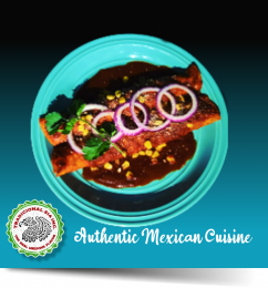 Corn tortillas stuffed w/ your choice of steak, chicken -or- cheese, topped w/ guajillo sauce, grilled corn, cotija cheese & onions.